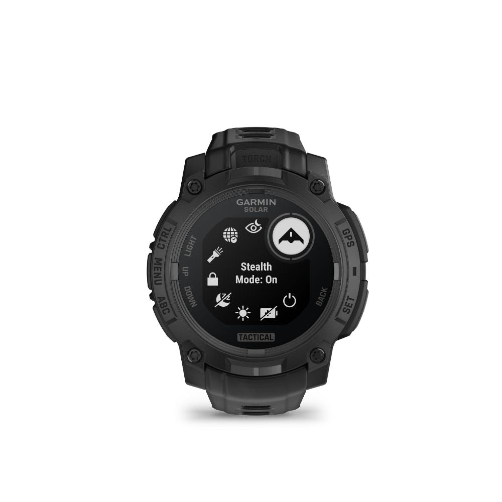 While keeping the tactical watch operational, stealth mode stops storing and sharing your GPS position and disables wireless connectivity and communication.