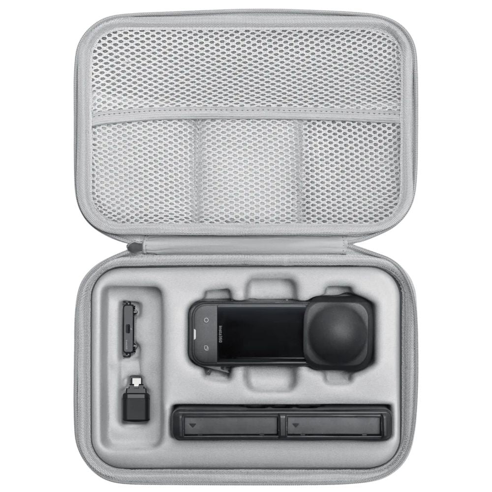 Keep your camera & essentials safe. Tailor-made for Insta360 X5. Designed specifically for X5, it provides a snug protective fit for the camera and its accessories, with a clear place for everything. A secure handle and selfie stick strap make it easy to carry your camera, selfie stick, and accessories.